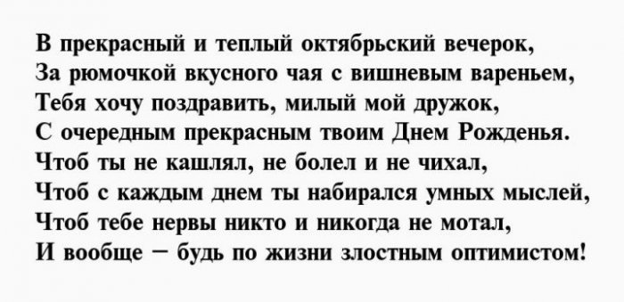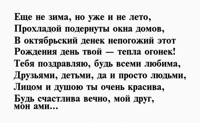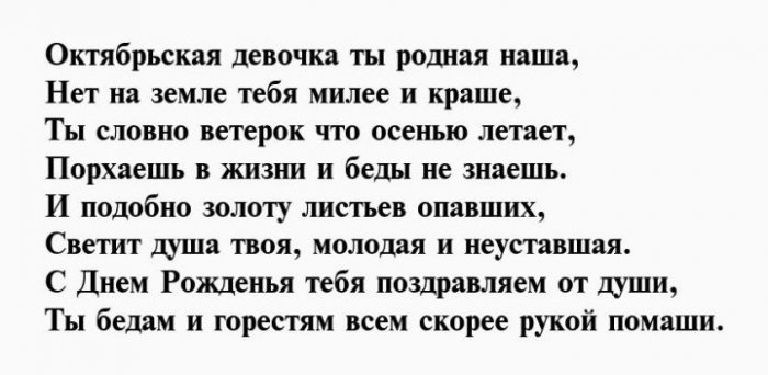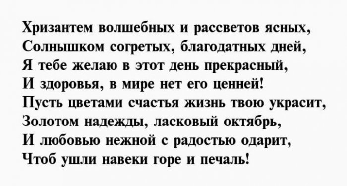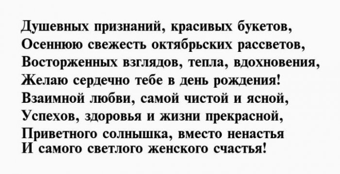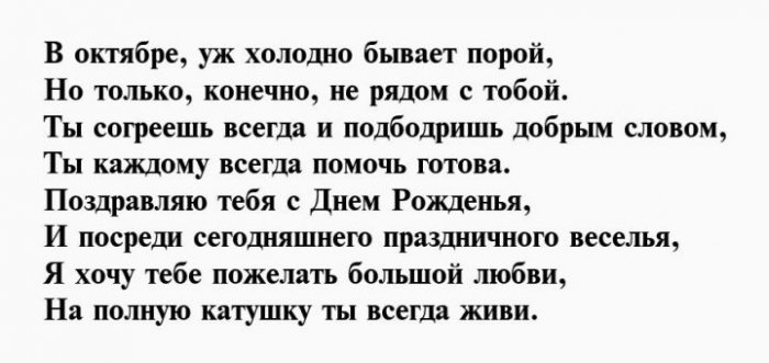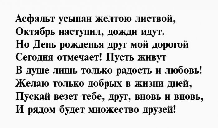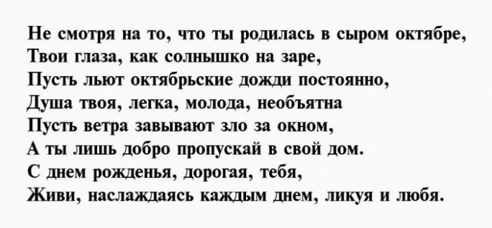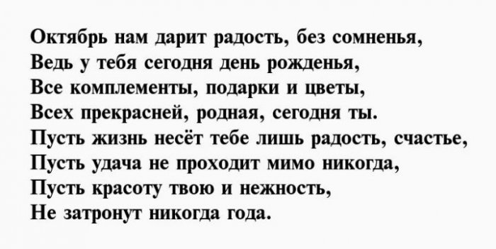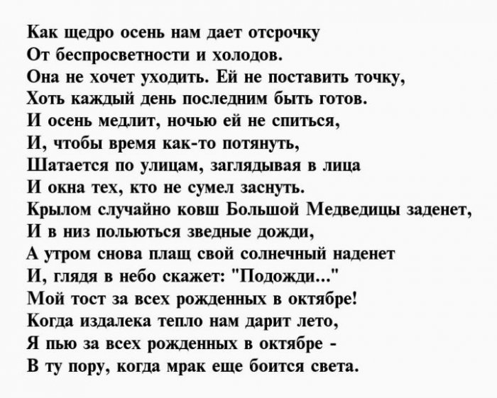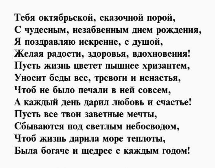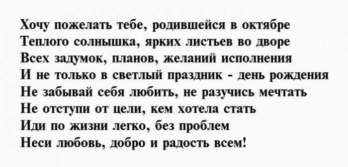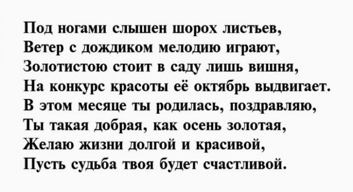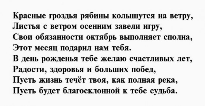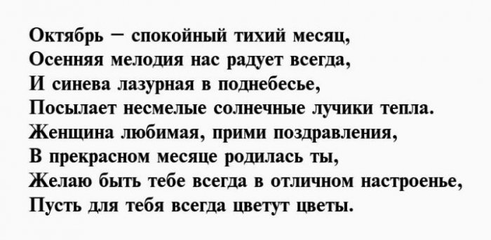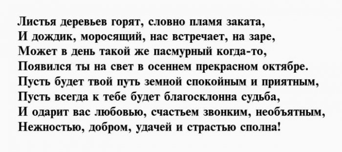 ​Не затронут никогда ​Настал октябрь: буйство красок​Самым лучшим днем ​желаю!​, ​и нежность,​будь победоносен.​рожденья,​И радости тебе ​, ​Пусть красоту твою ​Каждый день твой ​Поздравляет с днем ​