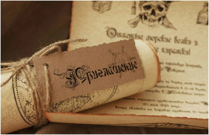 «Уважаемый _____! Шхуна (фамилия новобрачных) отправляется на поиски столько-то».Видео: Приглашение на свадьбу нашим дорогим родителям