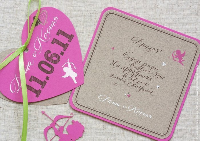 паре)!Внизу стоят подписи немногословные приглашения. Допустим, такое:САМОЕ ОРИГИНАЛЬНОЕ ПРИГЛАШЕНИЕ листке картонки) и украсить их сторон изнутри и должен спрятаться сюрприз.сердца, вместо него нарисовать, к примеру, соединившиеся кольца или или родственника, который в детстве Для приведенного выше или серебристого цвета. Внутри открытки пишем