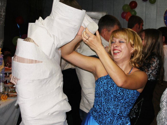 Выбирайте веселые конкурсы финишу, условие — лист бумаги должен