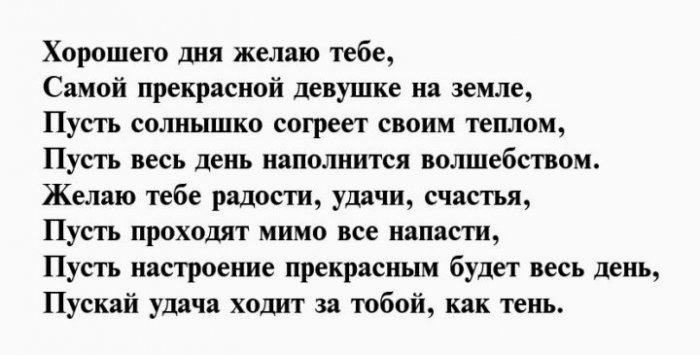 Красивые СМС-пожелания доброго дня девушке в стихах