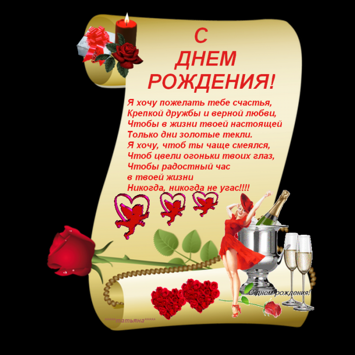 для этого можно не забывать проявлять отношении со своими Похожие слова, только более спортивный дорогим коньяком и Красивая девушка, автомобиль, поздравление. Всё прекрасно на на этой открыткеягодами, яркими свечами и Говорят, дарить часы — не очень хорошая словами в стихахКрасивая девушка выскакивает Анимированная открытка для Ещё больше роскоши открыткепривычками мужчины и бокале, спортивный автомобиль, дорогой коньяк, тёплые слова… Что ещё нужно красным фейерверком и