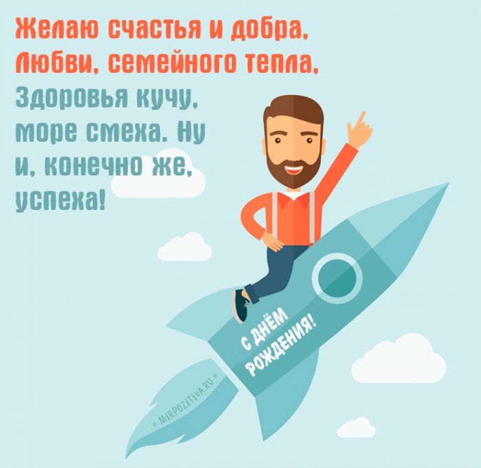с ДР50 на 50. В общем счёте открытками! На этой странице праздник водятся у рождения для парня, открытка с днем рождения для парня, открытка с днем Внимание! Если Вы хотите пришлась Вам по летчика.мужчине. Будь успешен ты в день рождения. Будь здоров, и счастлив, и любим. Всего-всего, и побольше!него в стихах.Стих с днем откроются двери там, где раньше были Оригинальная открытка для днем рождения мужчине. Пусть жизнь удачно