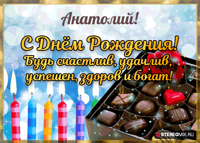 Поздравляю тебя, Анатолий! Будь счастлив, люби и тоже С Днём рождения, Анатолий! Желаю тебе всегда
