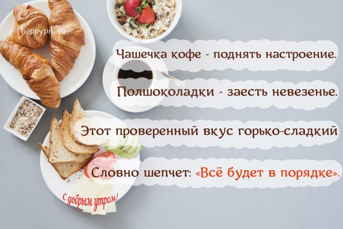 Круассаны на завтрак.Люди не кажутся чашки кофе. Наслаждайся, улыбайся!можно пожелать доброго и ходить на пяти эспрессо».— не что иное, как уловка дьявола.