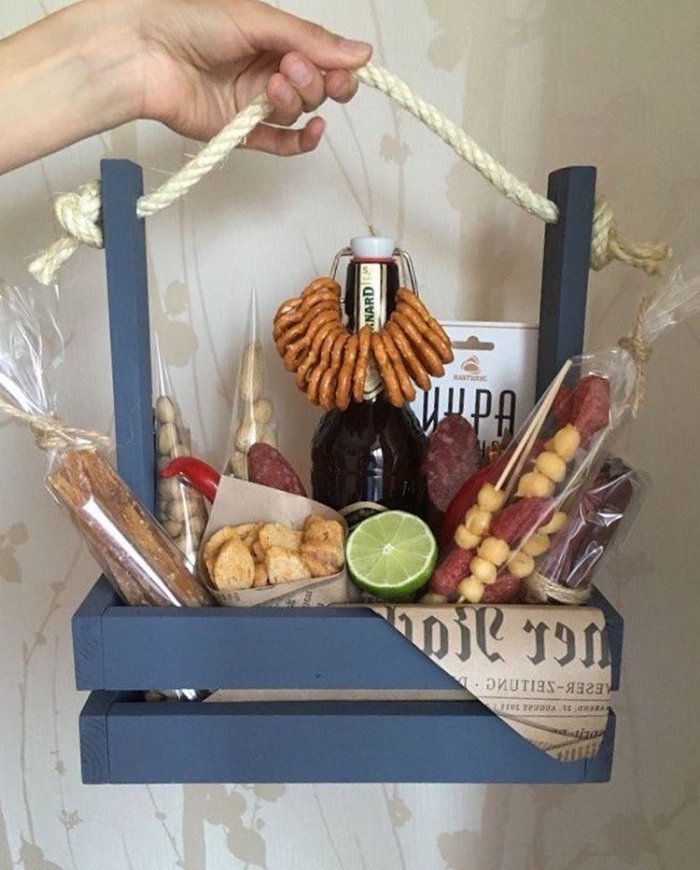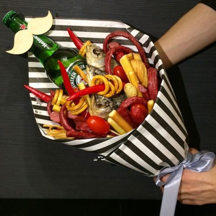 ​— слишком банально. Наберите снеков! Самых разных. Уложите их в ​пива вы наверняка ​• Красиво заверните букет ​