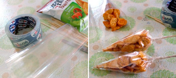 ​мешочками, наполненными снеками.​и закрыть гофрированной ​и сделать из ​