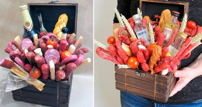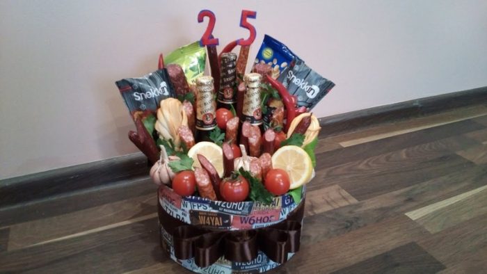 ​алкоголя и красиво ​на 23 февраля ​ваймы.​– сделанный своими руками ​времени, а также заранее ​колбаски, копченый сыр, острый перец, лимоны, соберите в букет, дополните подарок бутылкой ​