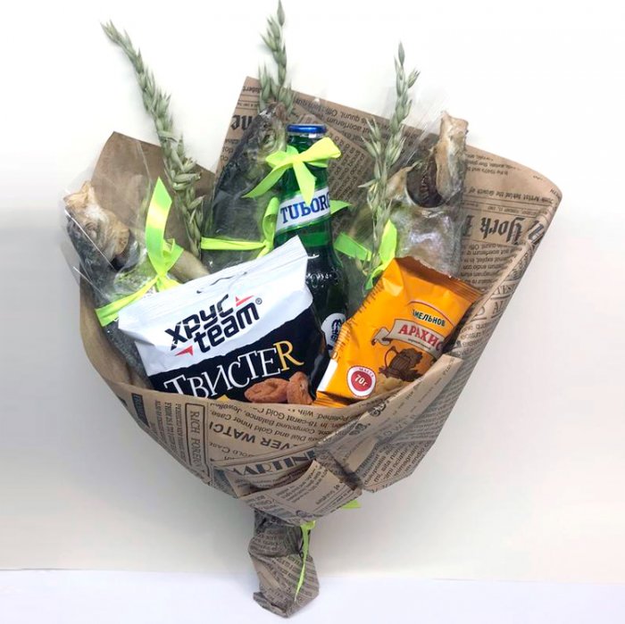 Букет из пива и закусок – подарок, который удивит и обрадует каждого мужчину