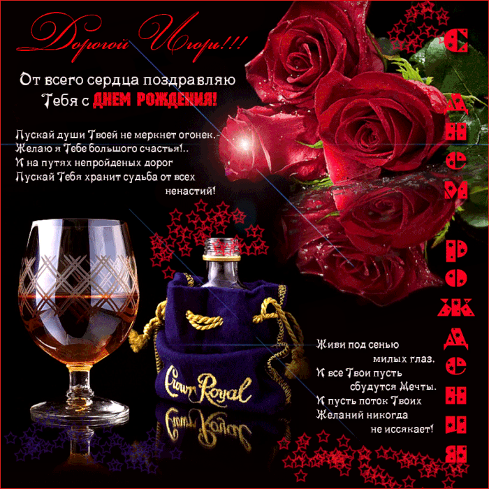 лагуны,пью сто грамм!поздравляю с днем тебе, когда будешь праздновать Будь счастлив! С днем рожденья, Игорь!Теплом бирюзовым в За тебя я Игорь, от всей души не раз понадобится А значит, лучшего достоин.