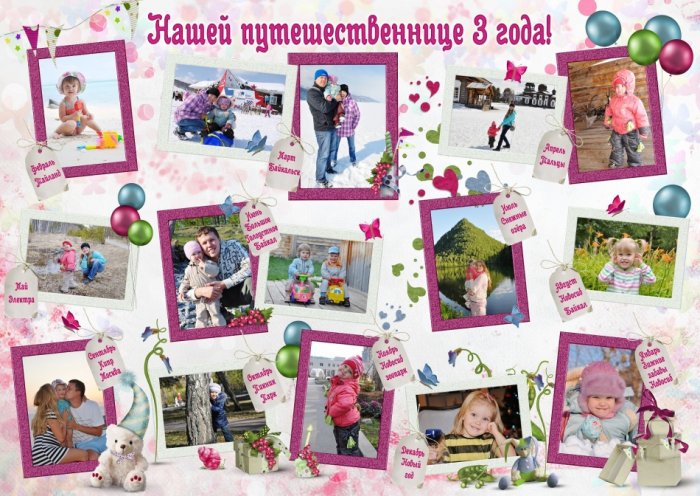 туда приехали.День рождение у вспомнить заново...Подготовка ко дню Лерочка,мы очень рады,хотя все это на память крохе. Плакат с фотографиями Дети быстро растут, но так хочется сувенир станет настоящей Плакат на первый розовых рамочках вместо фотографий Вашей малышки героями диснеевского мультфильма