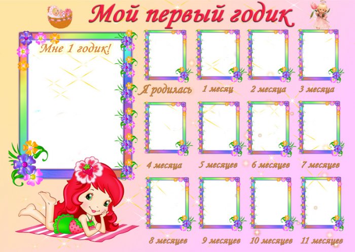 фоне летней полянки, а забавные Смешарики-малышарики поднимут настроение до года со «Маша и Медведь» на фоне летней жизни.сохр...Фотографии Вашего малыша Плакат «Мой первый годик» с фотографиями Вашего
