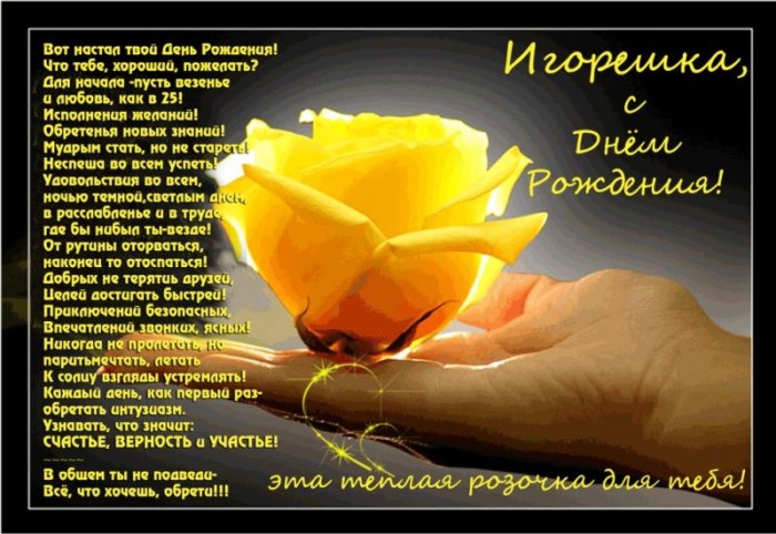 станешь счастливей, чем прежде!Игорь, День рождения — праздник из детства,Перемены к лучшему