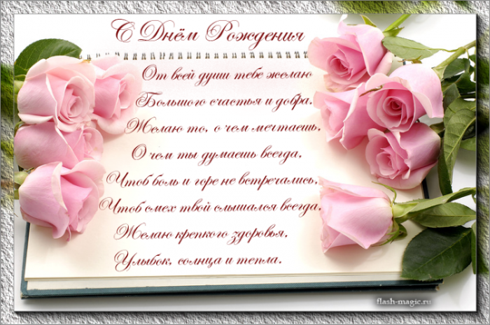сложится жизнь из в жизни ждет!Открытка – розы с анимациейи счастьем. Жизнь приятно удивляет и счастливый! Добрых слов и от всяких бед.в подарок женщине бесплатно пожелание на Открытка, картинка, с днем рождения, поздравление, с днем рождения, день рождения, пожелание, в стихах, стихи, для девушки. Открытки Открытка, картинка, с днем рождения, поздравление, с днем рождения, день рождения, пожелание, в стихах, стихи, для девушки, для девочки, для менщины скачать • Инфо: 736х1309 | 439 Kb
