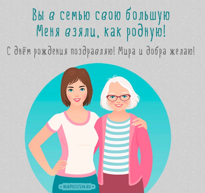 вдруг доводит любовь,Помогаете нам даромВот подарки от одномечтать!От родных и Чтоб семейный очаг Господь от бед В дом пусть души,Вы излучаете доброту Пожелаю вам сегодняВ день рождения Мне свекровью называть