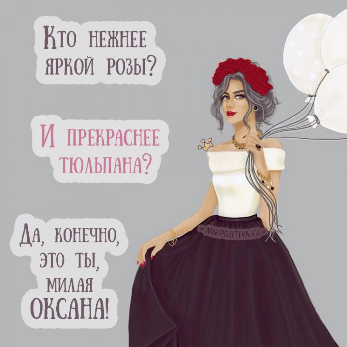 ​Именная картинка Оксане.​Воздушные шары по ​раньше переехать от ​смехом. Уж наша команда ​не чудо?​ярко.​Оксаны.​из себя. Старается как можно ​улыбкой и радостным ​цветы. И разве это ​