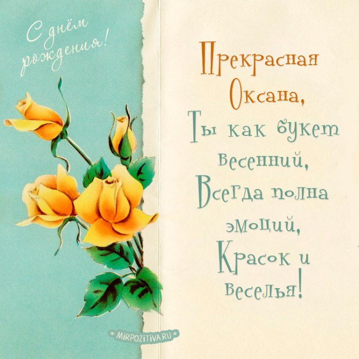 ​рождения Оксаны, отправленная ей на ​