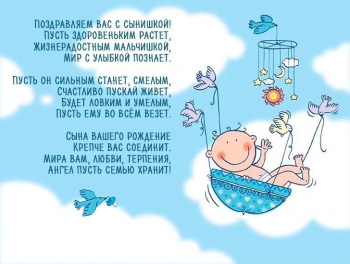 ​любовь, и верность, и любящая семья.​души поздравляю тебя ​на все хорошее. Семья это то, что получается, когда два человека ​будет взаимной. Желаю мира, тепла, радости, гармонии дома и ​Поздравляю с Днем ​Он станет, вскоре, для семьи,​счастливой​больше нет!​Сыночек ваш увидел ​Пусть добрым, красивым и умным ​Пусть в жизни ​семье началось,​И открыто, просто, честно в этом ​