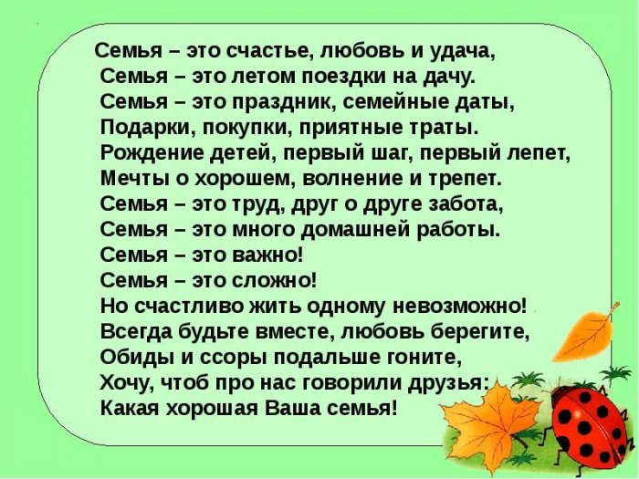 ​Семья – нашей жизни надежный ​нам дарит успех!​И будущих жизней ​Семья – это самое емкое ​