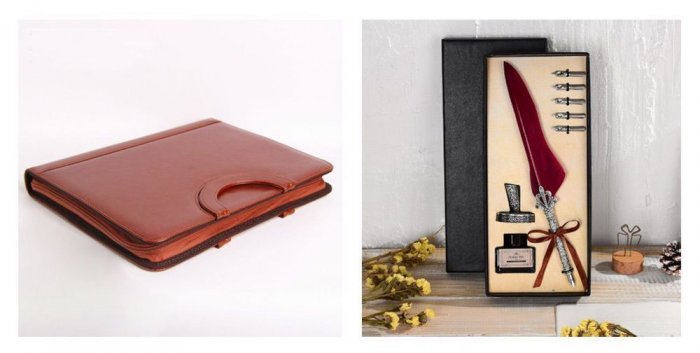 • Настольный офисный бизнес-набор. Чаще всего заботится ее рабочего кабинета.