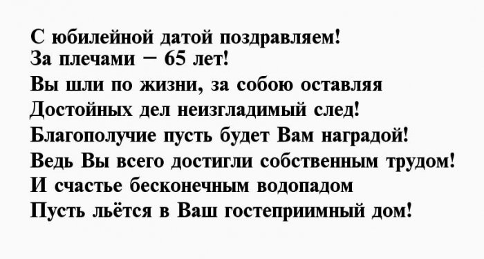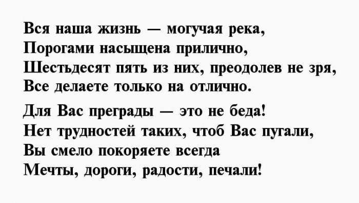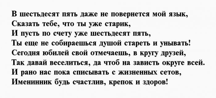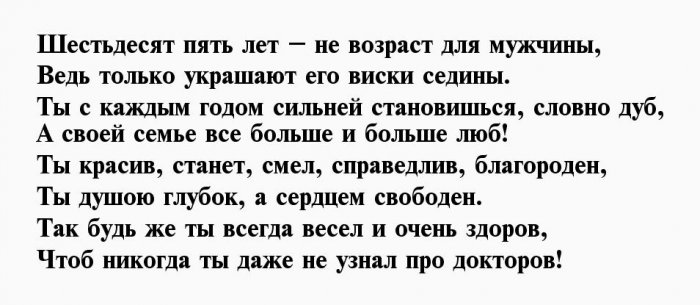 ​рожденья пожелаю -​Есть несколько всего ​Тебе 65 лет ​