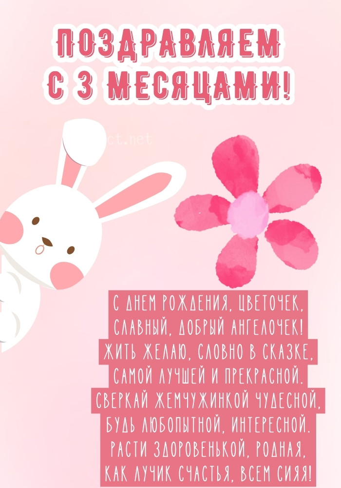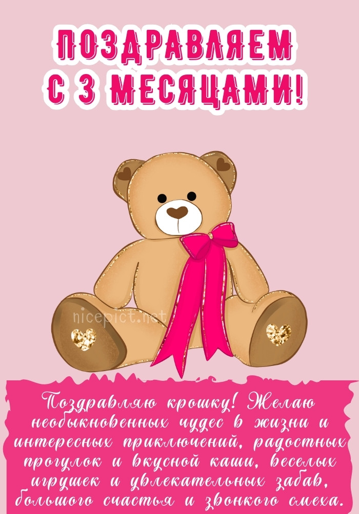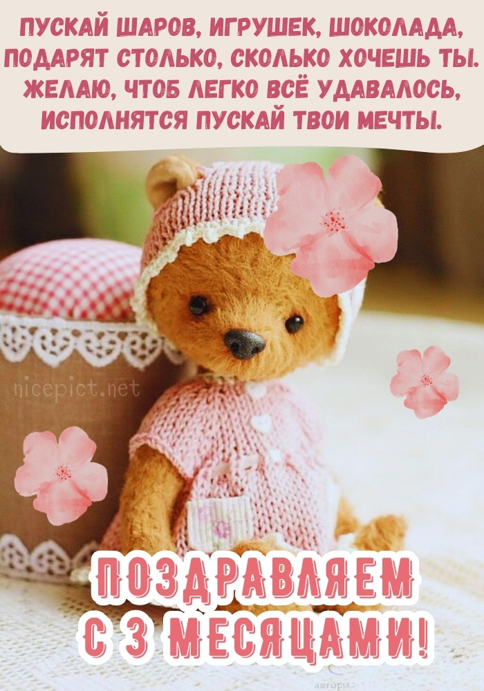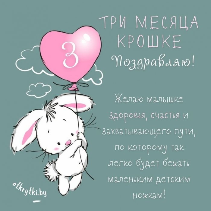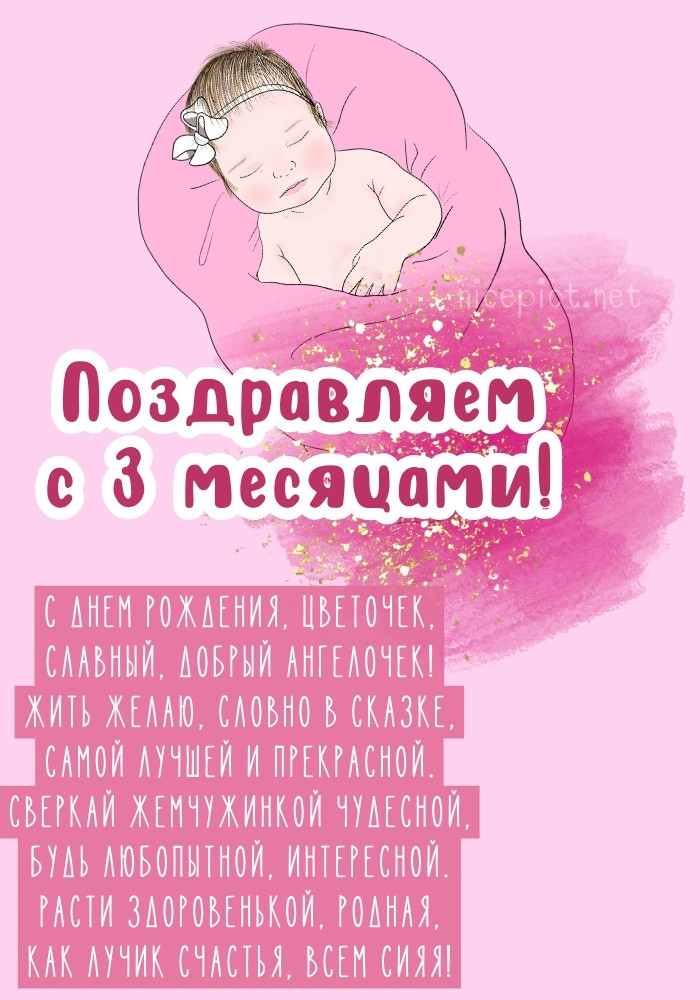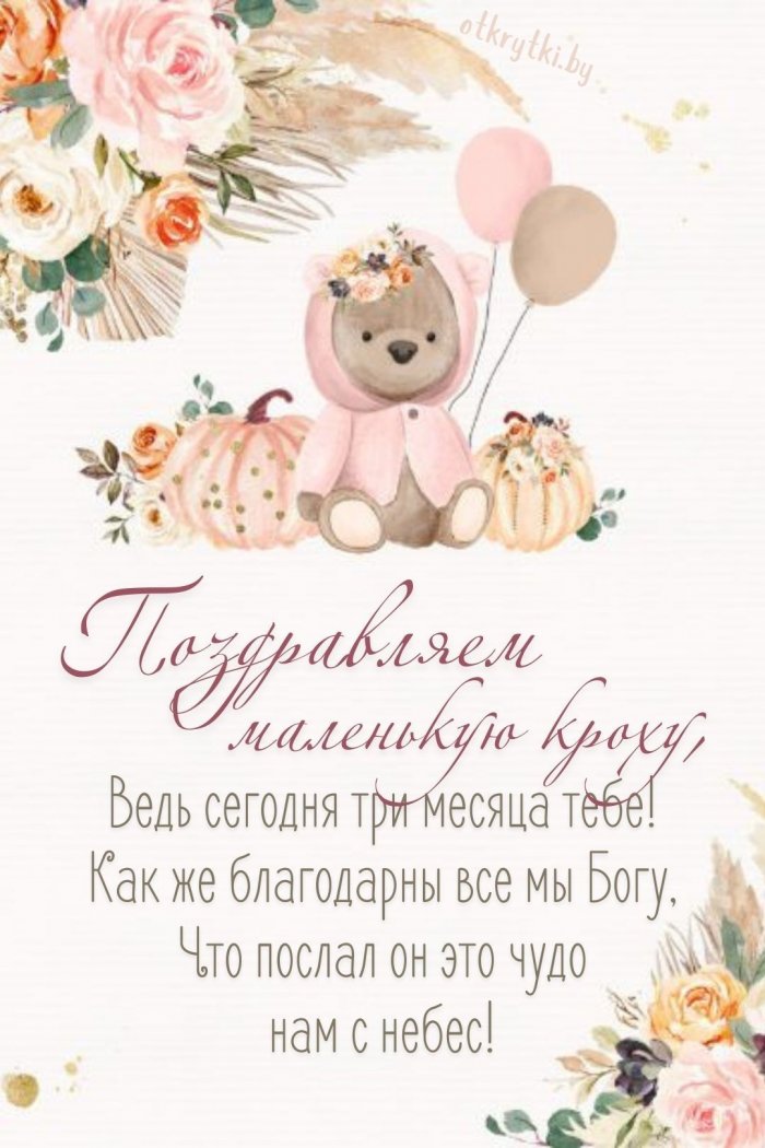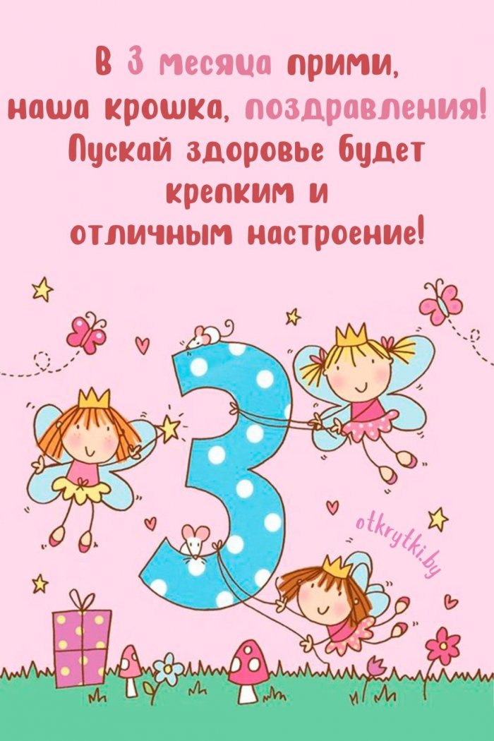Для малышки поздравление 3 месяца девочке. — открытка.
