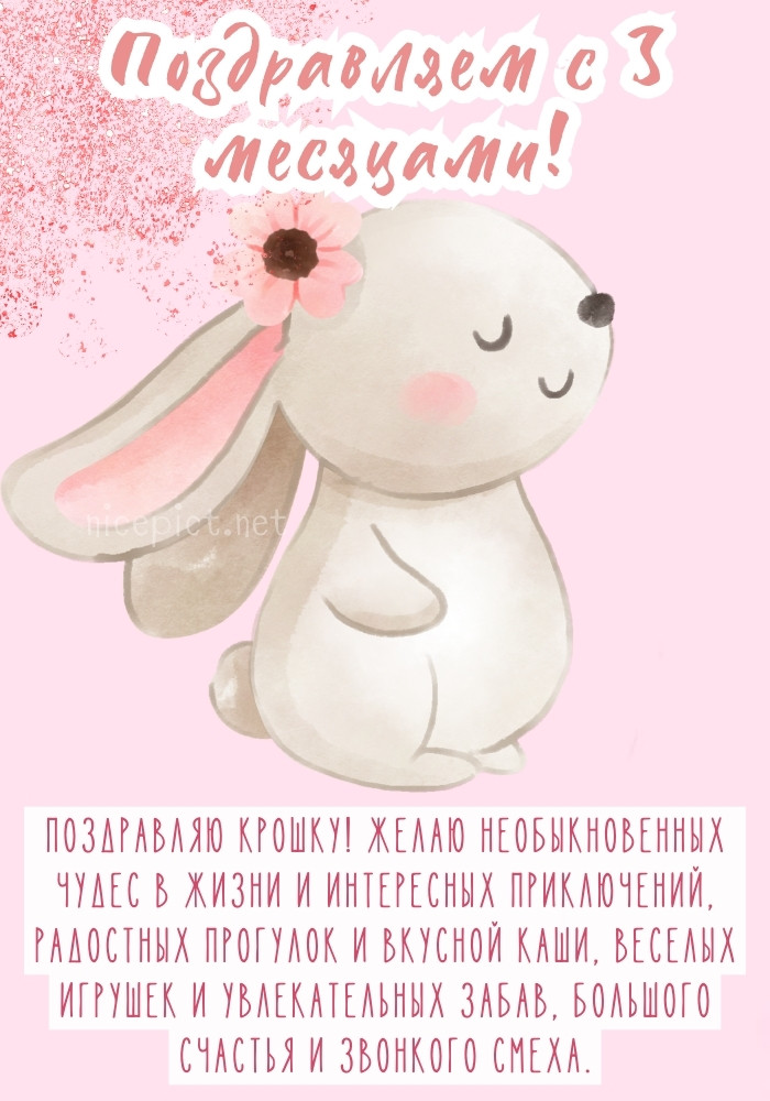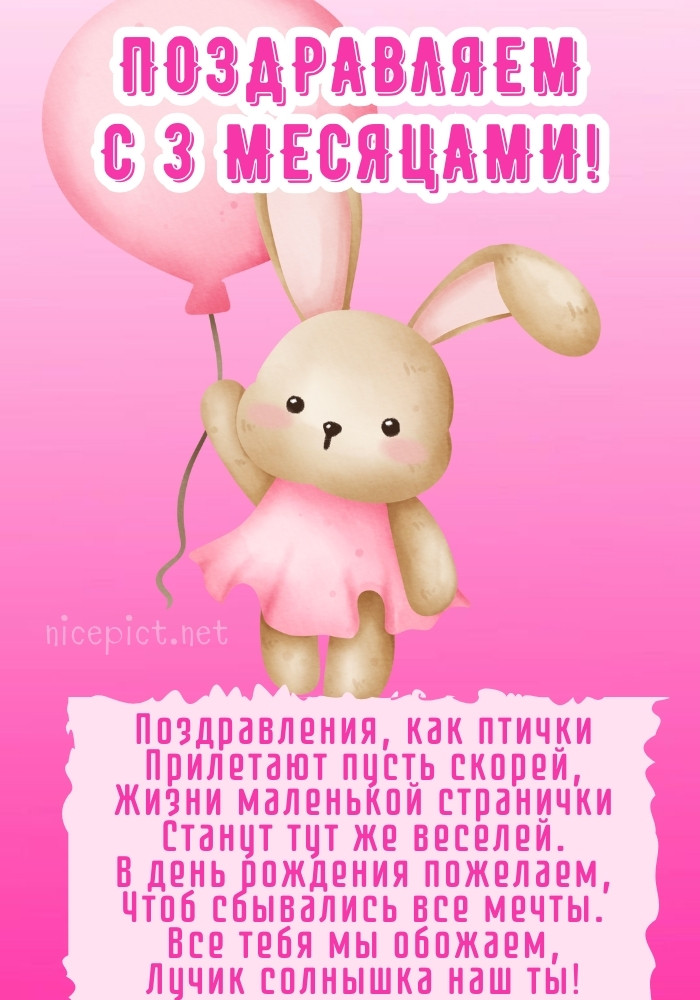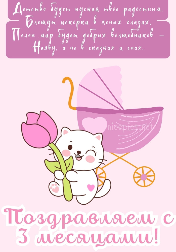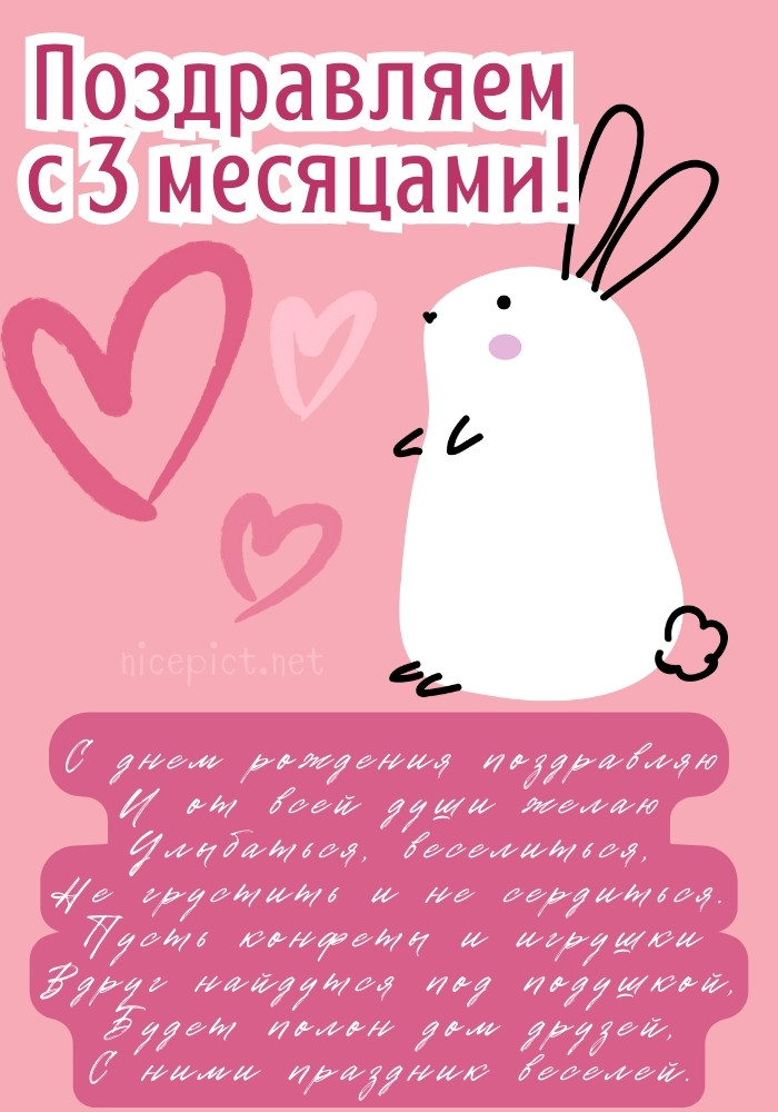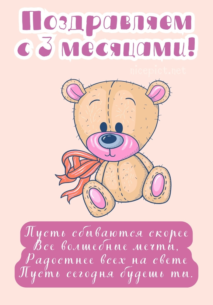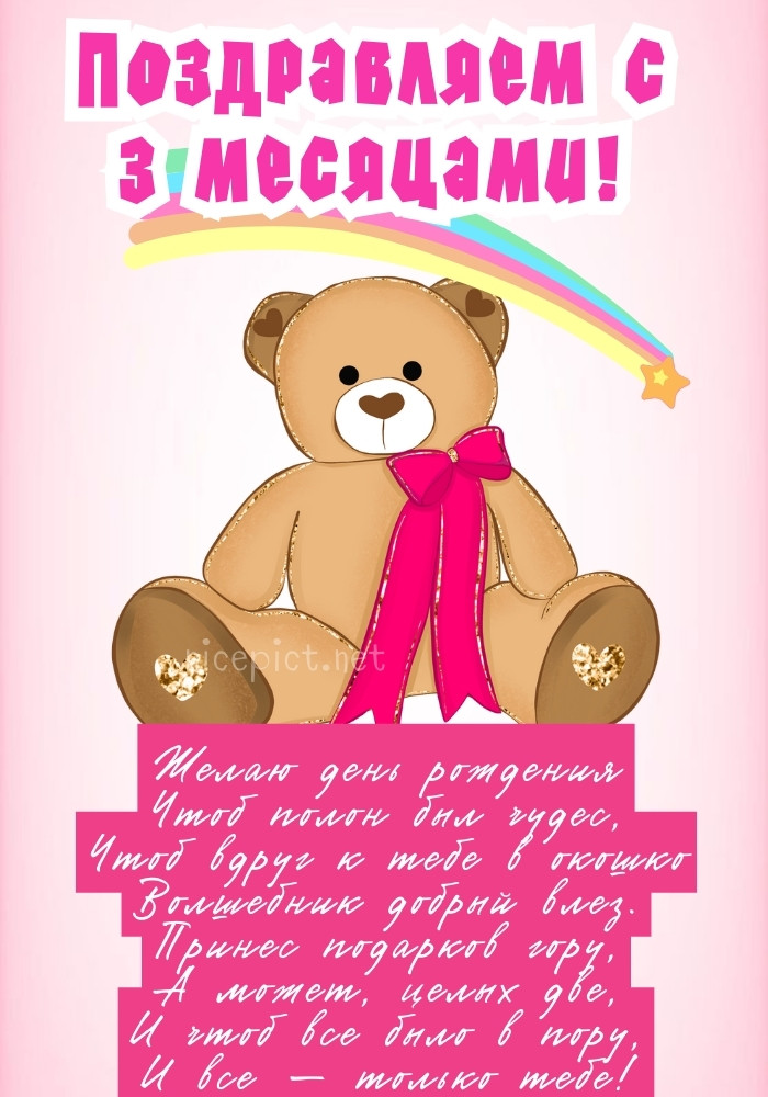 Для малышки поздравление 3 месяца девочке. — открытка.