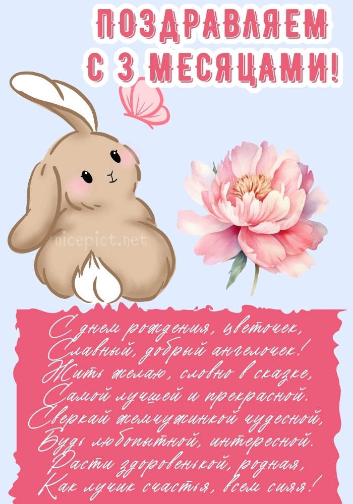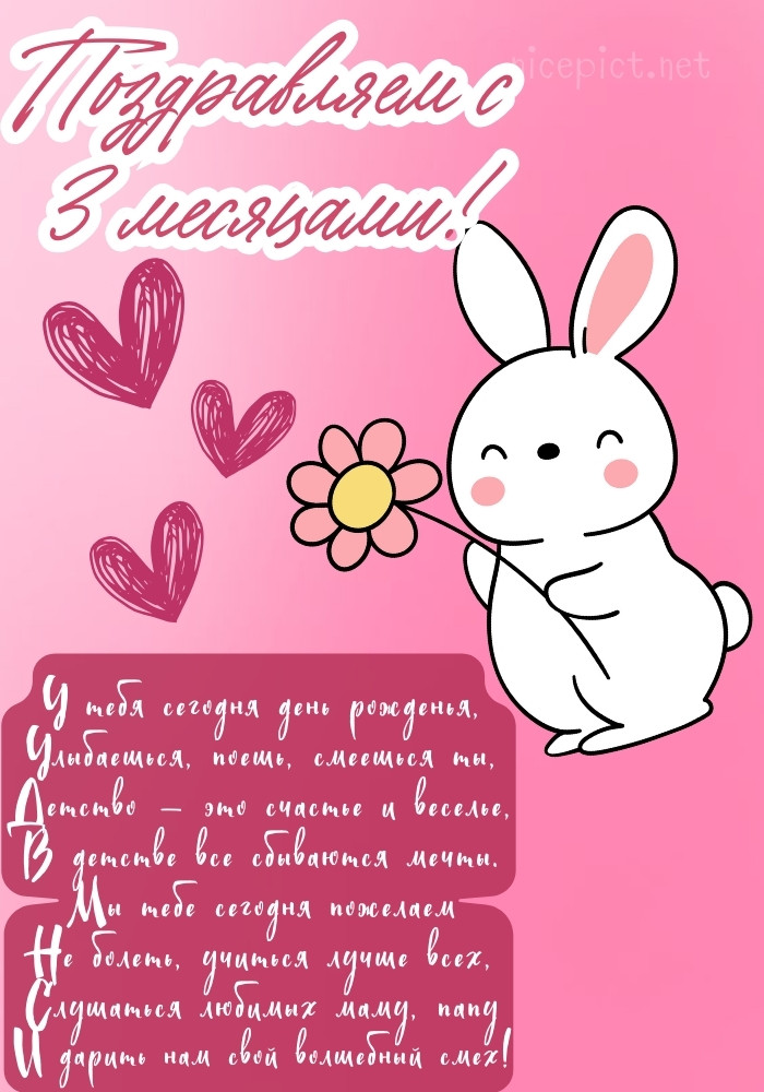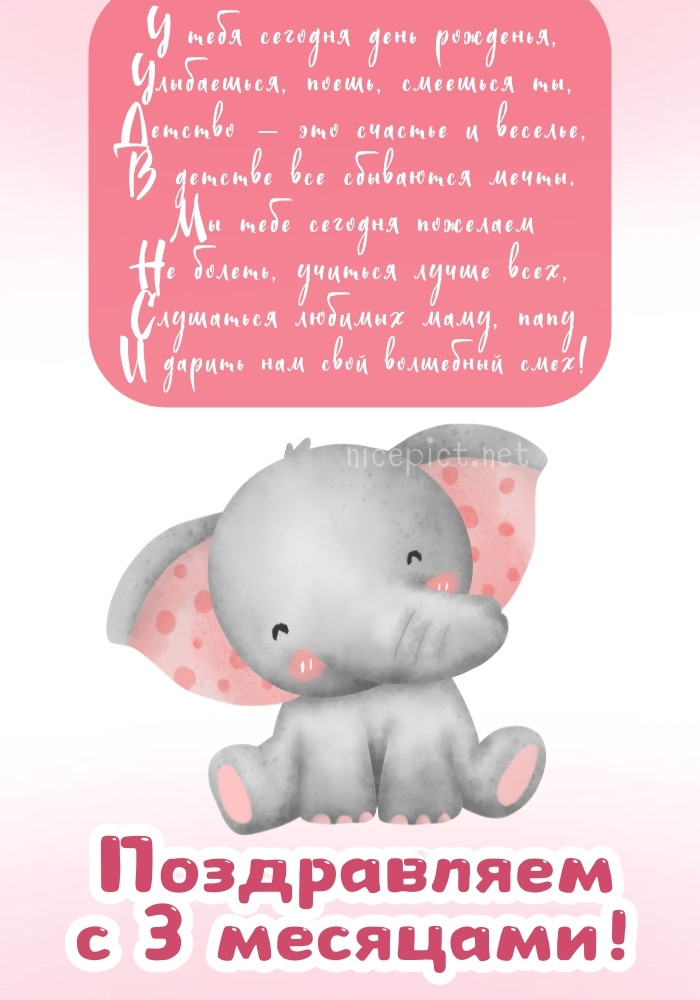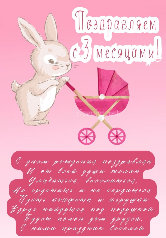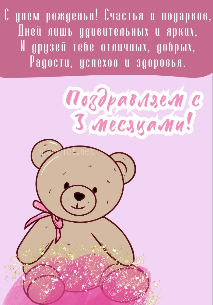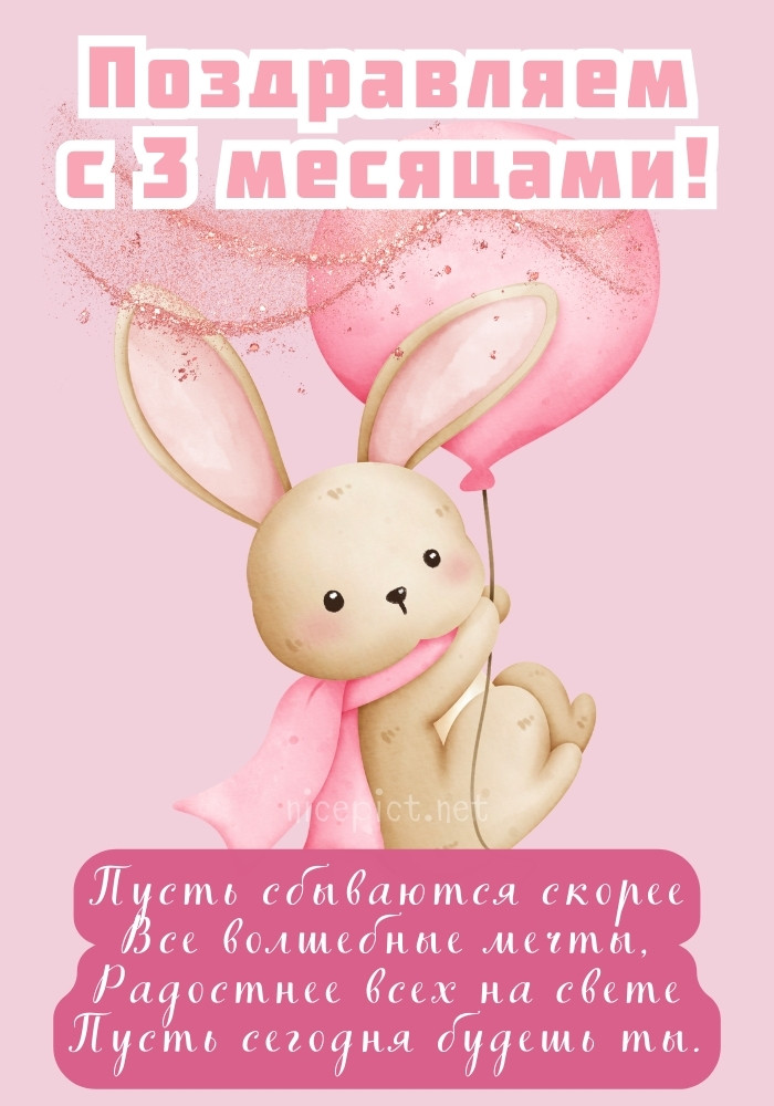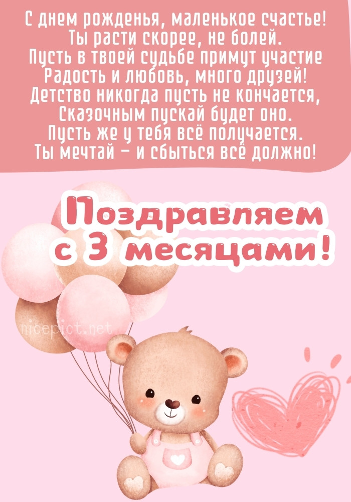 Для малышки поздравление 3 месяца девочке. — открытка.