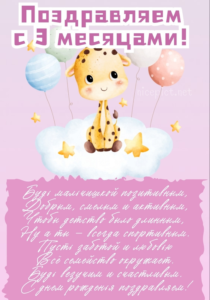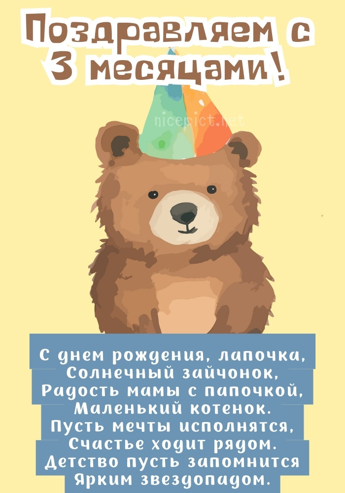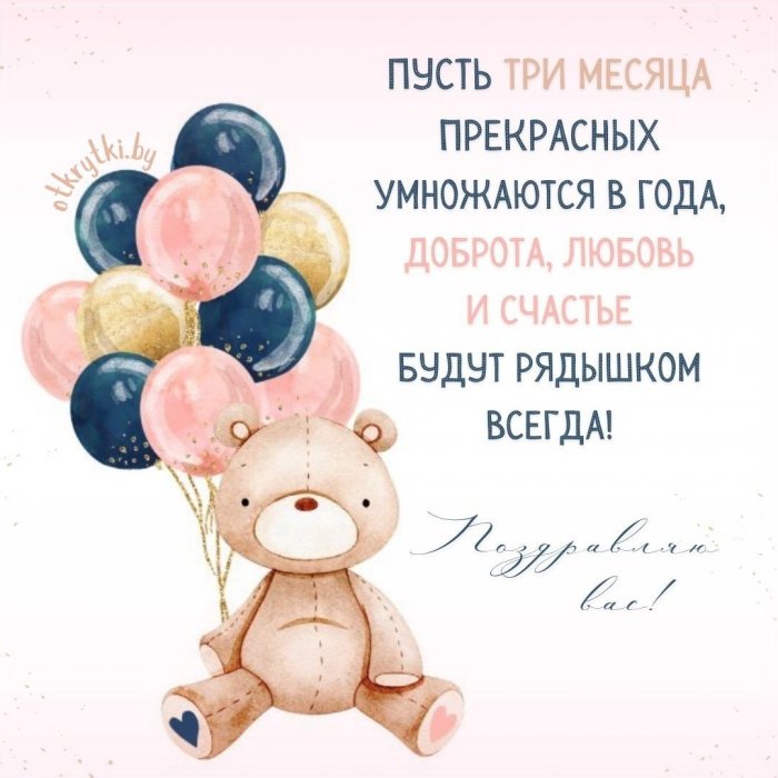 днем рождения 3 С 3-мя месяцами ребенка! — картинка.