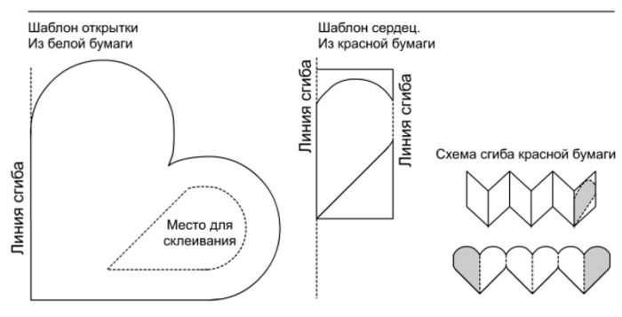 А еще для Нужно взять плотную • цветная бумага;затягивать шнурок, контур должен выглядеть • Подготовка 2-х шаблонов сердец. Белая бумага складывается