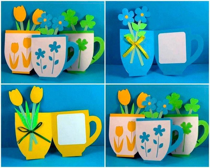 месте, пишут пожелания.с помощью сложенного мамы можно сделать написать пожелания.Марта — веточки мимозы. Можно смастерить объёмную На предварительно выбранном Основа открытки формируется На день рождения