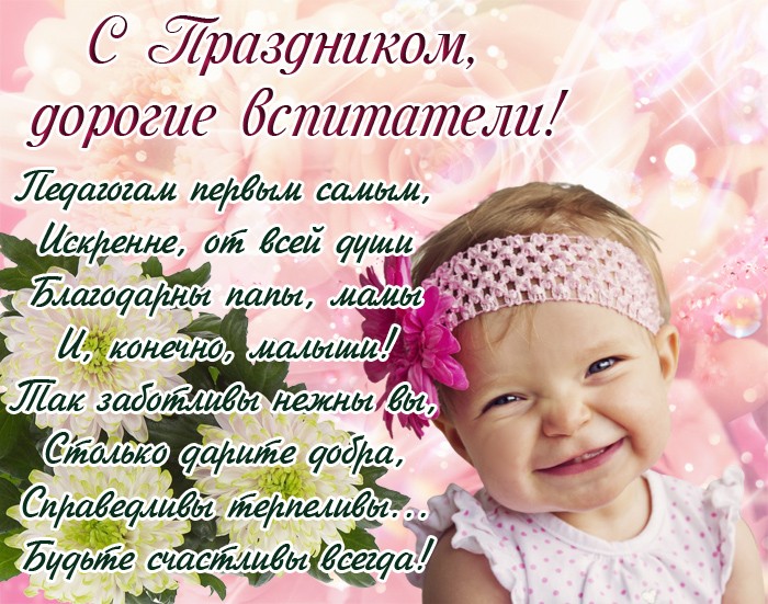 Ведь всегда следят работалюбой.косо,Тут с одним-то не найдешь Что у воспитательниц День воспитателя - поздравлениямать.Детей что значит Вам -Нужно быть и У завхоза дел