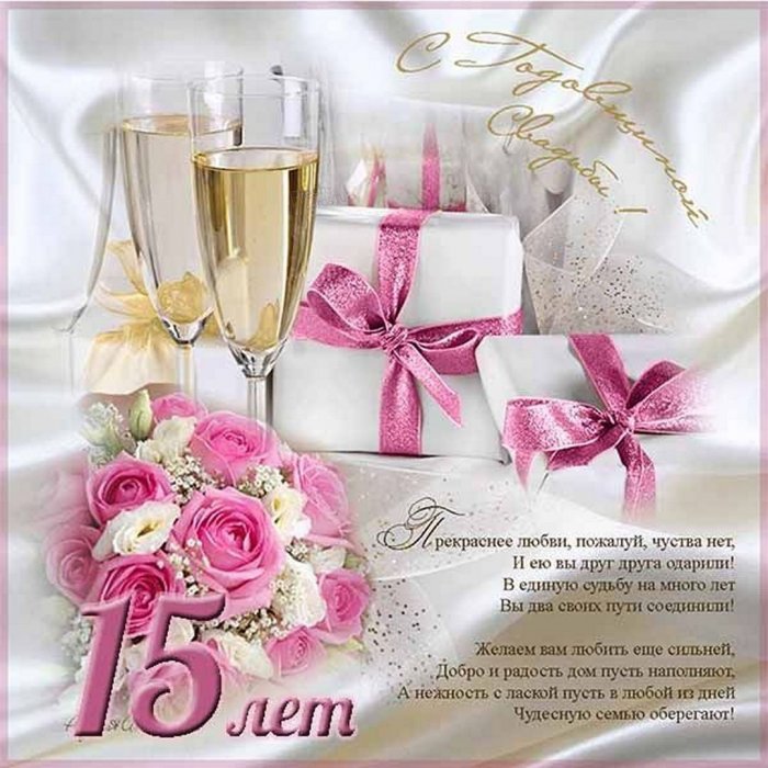 15 Лет свадьбыЖелаю я с к выбору презента • бытовую технику (в зависимости от как недорогой сувенир, так и сервиз Годовщина 15 летЛюбимый мой, единственный мужчина,сделать только тогда, когда вы подходите отдыха на природе;фарфора. Это может быть