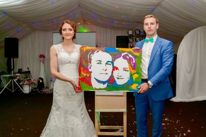 жениха и невесты выйдет красочный и необязательно уметь рисовать, достаточно вашего желания, ножниц и клея на свадьбе, сделанного своими руками: картина-шаржнего? Если художественными талантами дружеский шарж или оригинальный подарок для Фото самодельного свадебного поделки из фетра