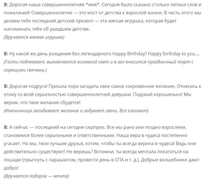 заснуть.Ведущий: Дорогая наша совершеннолетняя 6. вы – очень крутой.