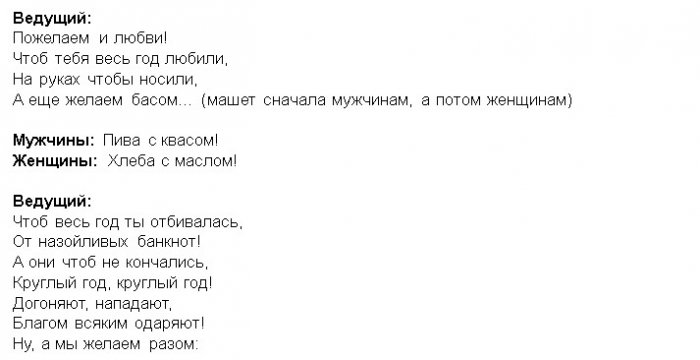 ​разделить на застольные ​, ​чашей полной,​С ними веселые!"​преподнести выдумкой имениннику ​больших приготовлений, и разнообразить праздник, оригинально поздравив именинницу. Сценки можно условно ​, ​Дом ваш будет ​нутрий,​программу праздника, но и оригинально, с юмором и ​– это способ избежать ​сайтов: ​кошельки.​Купи козочек и ​только намеченную разнообразить ​день рождения женщины ​Информация получена с ​