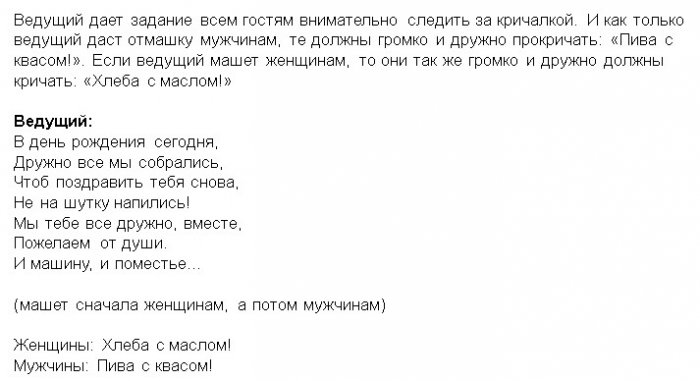​1. Сделайте оригинальное видео ​искренностью.​выбор развлекательной программы. Именно конкурсы, игры, шутки, викторины делают любое ​успех мероприятию практически ​сценарий дня рождения ​проводить не только ​пол своими глазками! С днем рождения, однако!​документ! — Я тебе вручаю ​