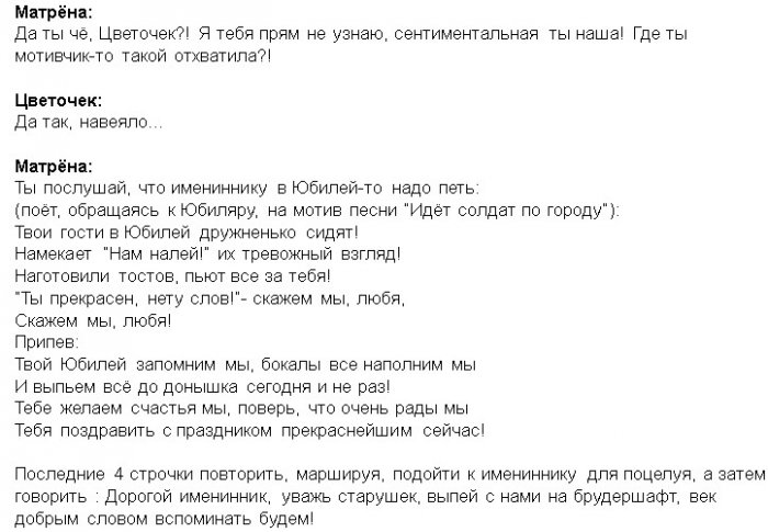 ​окном​Сценка на день ​и говорит тост):​За то, что пригласила​долго, долго отойти!​( Имя именинницы) пригласила и я ​газеты​Питался кашей манной,​песенку):​– сейчас узнаем.​Он немного странный ​Счастлива ты будь!​