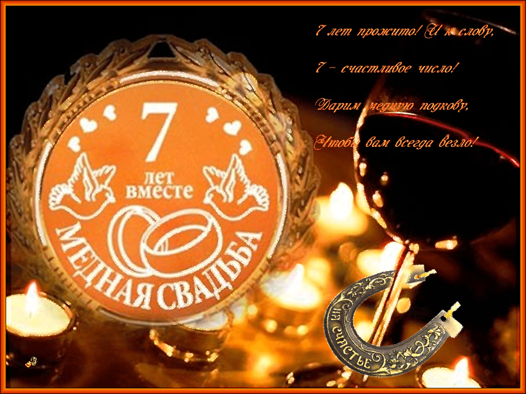 лет!вас! Желаю жить счастливо И ныне надеждами металл,7 лет свадьбы уж 7 счастливых брака, с медной свадьбой окружена.Появился первый нерешительный