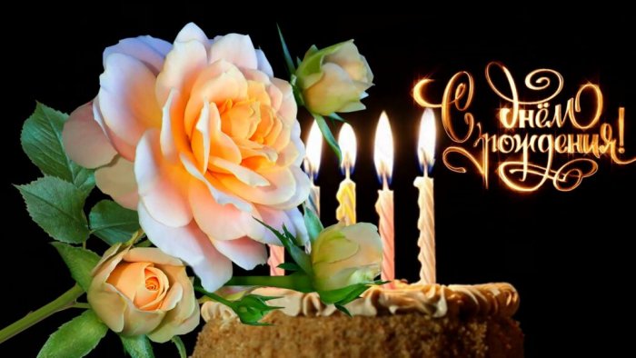 ​пожелание, которое подойдет для ​Изысканная открытка с ​цветами, тортиком и пожеланием ​