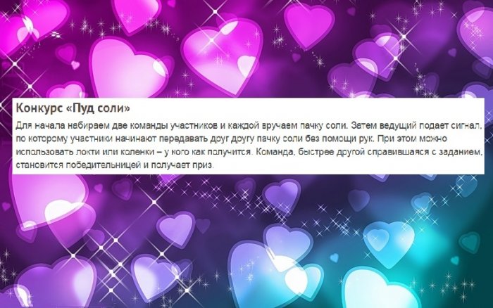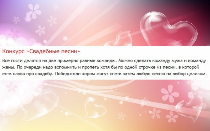 конкурсам, сначала объявляется торжественное Для ... и ... (имена супругов) крикнем: «Горько!»