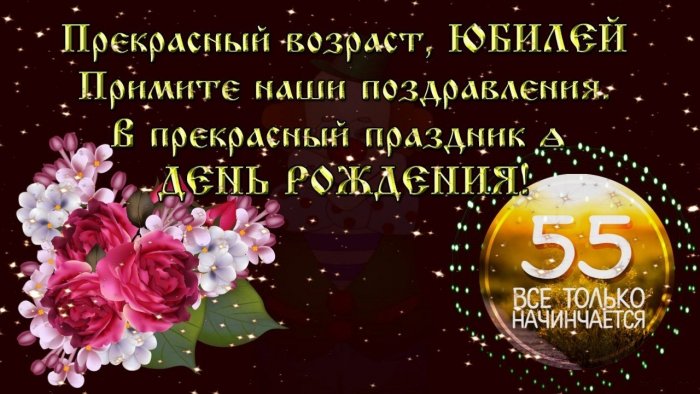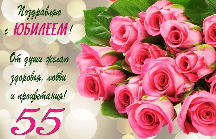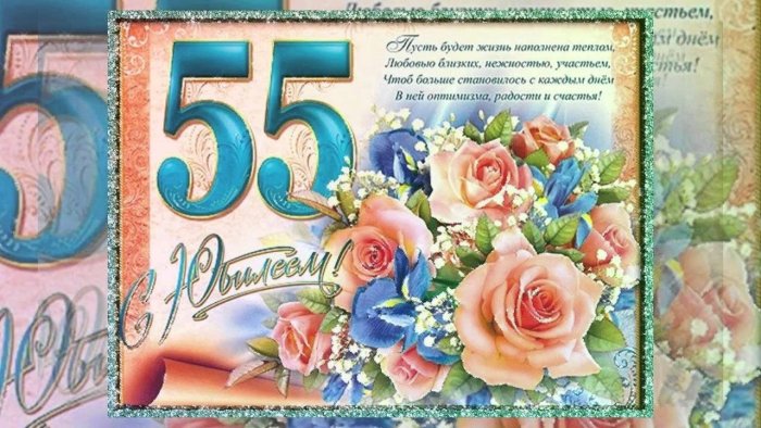 Красивые открытки, картинки с Юбилеем на 55 лет женщинам и мужчинам. Часть 2-ая.