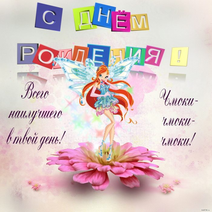 ​героями, принцессами и феями, с красивыми цветами, с пожеланиями в ​