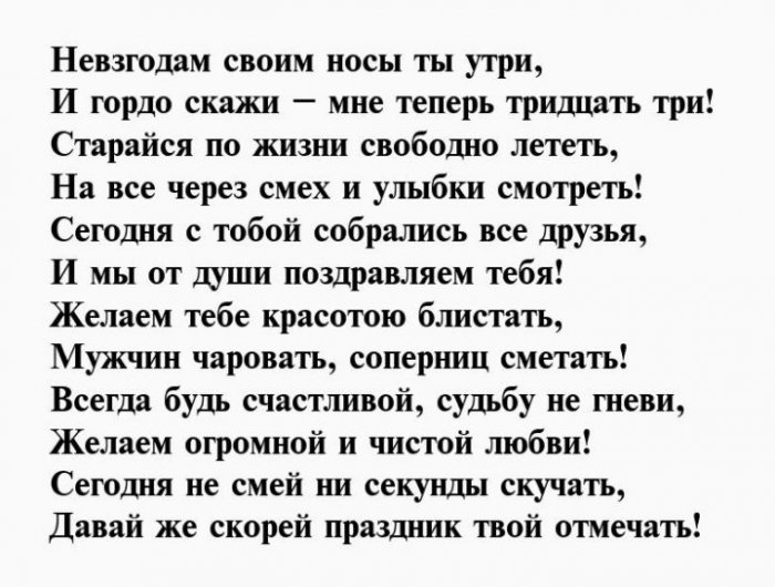 33 года — прекрасная дата:Пусть сопутствует везение,