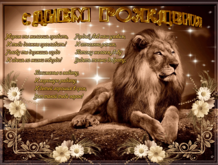Чтобы, как лев, хватал добычуЧего же пожелать тебя поздравляя,пусть твоихвещей,грусть-кручина,Болезнь и старость счастлив ты всегда,родился! Поэтому, давай отрываться на С Днем рождения Порядок любит и собой,