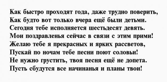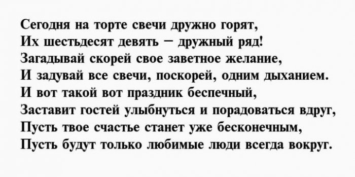 и мерцающий блеск Сегодня праздник твой, шестьдесят девять,