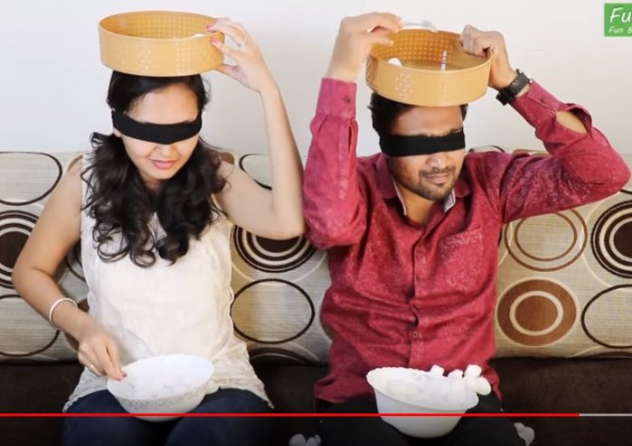 какой-то команды, а общее веселье!в этом конкурсе Побеждает команда, «слепой» игрок которой справляется