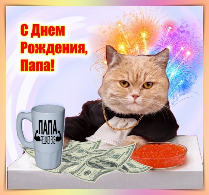 папе, папуля, прикольный кот.У папы праздник.Я тебе желаю