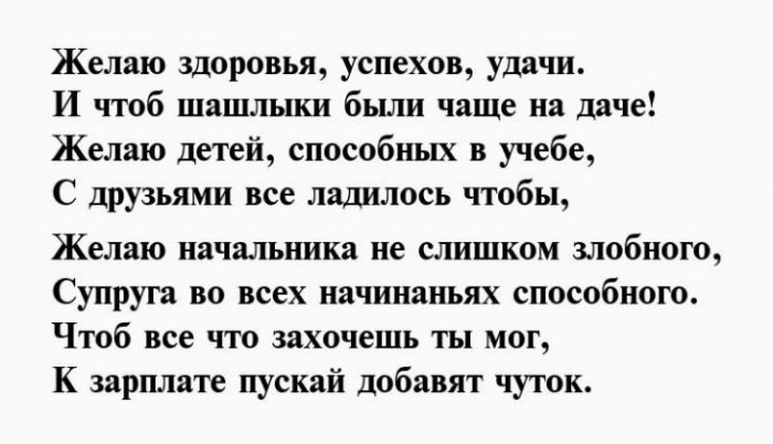 И, конечно, оставатьсяМы тебе желаем, чтобыЖелаю тебе от Побольше хороших мгновений,днём рожденияПусть тебе во сорок два,Стороной идет беда!И в такой