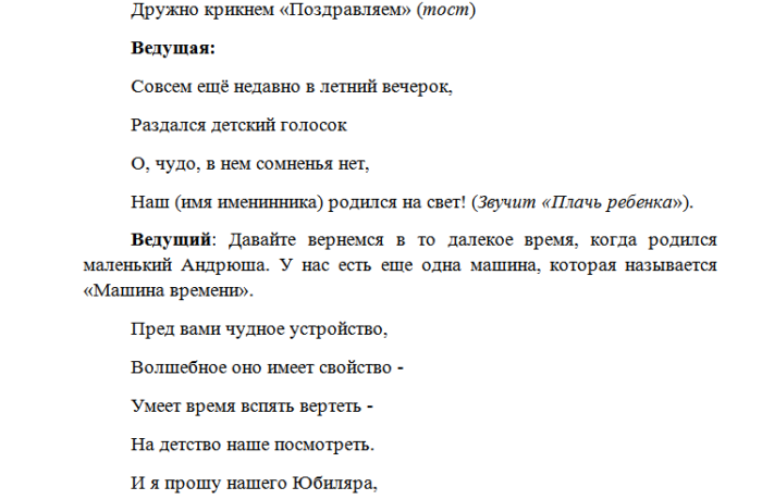 твою биографию,На стене листы Тосты от гостей.«мысли».Зовем их в 2. Чтобы вспомнить потом А смотрите, что за диво!ним.зачитывает по списку